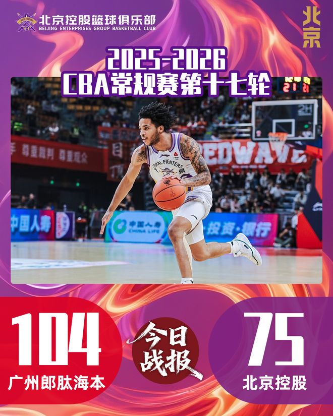 1月19日晚,北控男篮迎来广东_x0008__x0008_之行的第二场比赛,对阵广州朗肽海本。本场比赛,全队始终无法找到上一场战胜广东队时的节奏与感觉,进攻端手感不佳、防守成功率偏低、全场16次失误……最终以75:104不敌对手,结束客场_x0008__x0008_之旅。