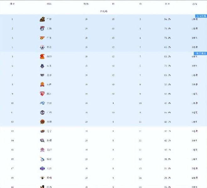 本轮比赛结束后,积分榜前列的竞争态势进一步复杂化,广厦队的连胜被终结,但与排名紧随其后的球队胜场差仍然接近,上海队的失利让其排名出现波动。
