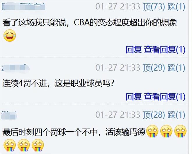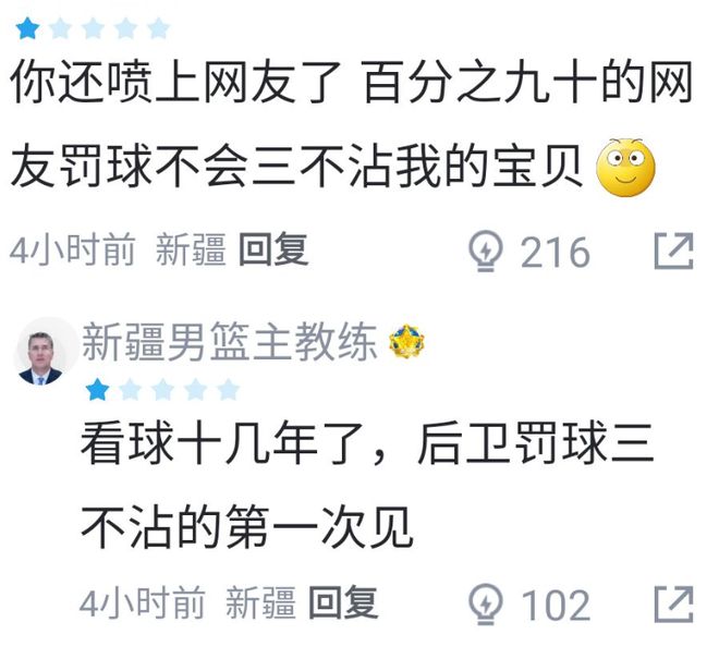其中扎提的第1罚还出现了辣眼的叁不沾现象,这是导致新疆队葬送大好局面的其中一个原因,也是活久见了,按说扎提也不算是年轻球员了,经历过几个赛季的磨炼,不应该出现这种情况。