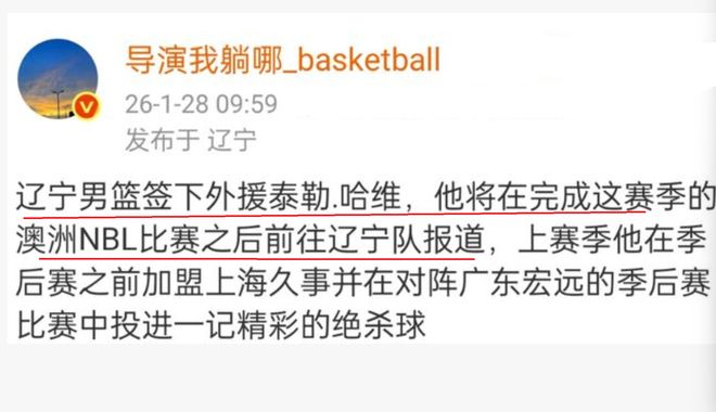 有意思的是,随着杨鸣下课,球队第六外援,也是浮出水面,根据辽宁媒体人透露,目前,辽宁队已经签约了泰勒·哈维,接下来,他将会代表辽宁队参加颁叠础联赛。