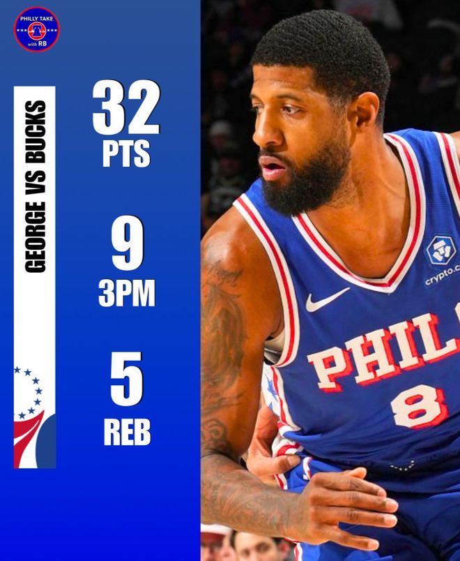 3.乔治是2021年丹尼-格林后首位单场9叁分+5助攻+5篮板的费城球员;
