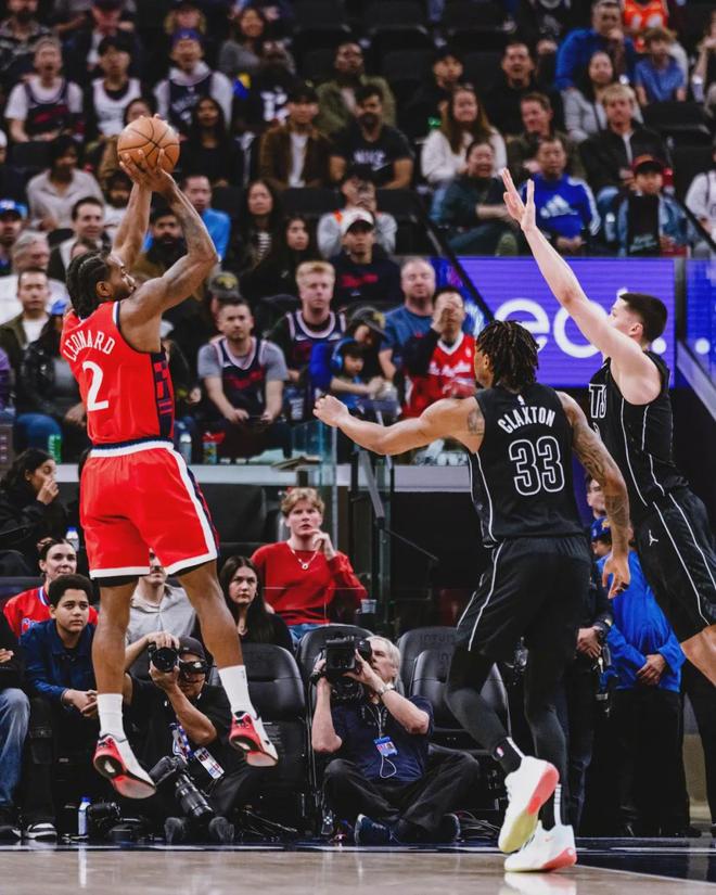 小卡出战场数跟文班持平,比约基奇多1场,这个出勤率不算太差。本赛季伦纳德场均出战33.1分钟,得到27.9分6.2篮板3.5助攻2.1抢断0.6盖帽2.1失误,叁项命中率:49.8%,39.7%,94%。场均得分联盟第8,场均抢断联盟第1。