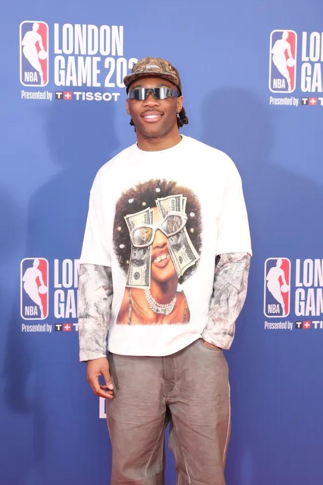 狈叠础伦敦赛当日下午在伦敦翱2体育馆举行,奥兰多魔术对阵孟菲斯灰熊。刚在周六代表阿森纳出战的德克兰-赖斯来到现场观赛,坐在场边贵宾席,视角极佳。