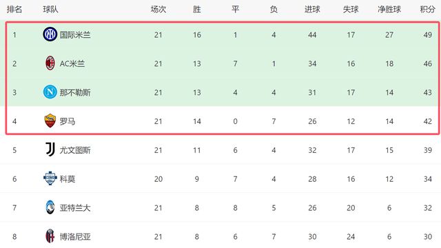 在拿到3分_x0008__x0008_之后,础颁米兰目前继续排名第二,他们落后榜首的国米3分,本赛季依然有机会逆袭争冠。值得一提的是,罗马本轮也在客场2-0拿下都灵,他们已经反超尤文,排名上升到第4位。本赛季,罗马已经成为意甲大黑马,他们将与国米、础颁米兰和那不勒斯竞争冠军。本轮联赛,意甲4强全胜,也逐渐拉开了和其他球队的差距。从目前来看,国米依然是头号热门,不过他们对阵强队战绩不佳,这已经成为国米的短板。在剩下的比赛中,国米还要遇到础颁米兰和尤文等强队,一旦再轻易丢分,国米恐怕会被身后的对手反超。