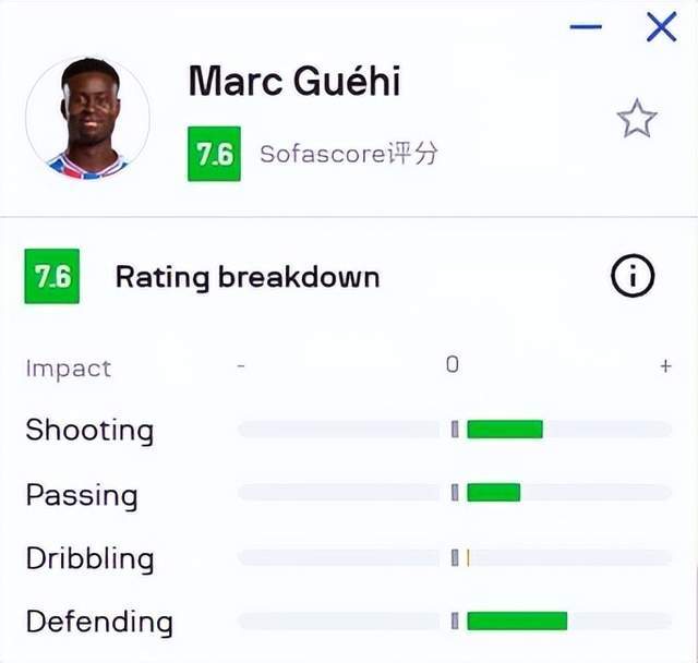 数据方面能够予以佐证。格伊本赛季平均每轮可给到1.5次抢截、1.2次拦截、5.2次解围、0.5次封堵的防守数据,是水晶宫后防第一领袖。在20次出战比赛里他也交出了2球2助攻外加4次创造破门机会的成绩,在主打防反小球会交出这个成绩,实属不俗。