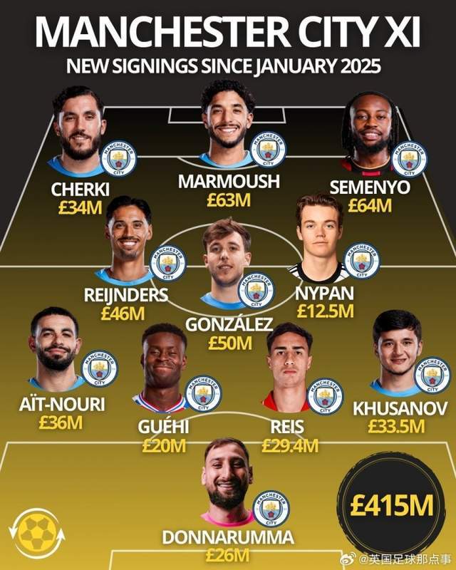 曼城自2025冬窗来买下的新人,的确“壕”。