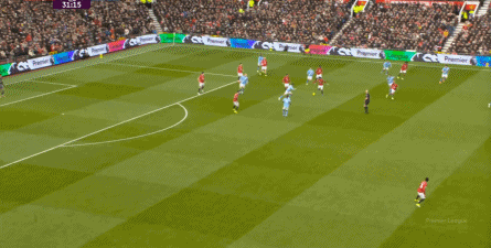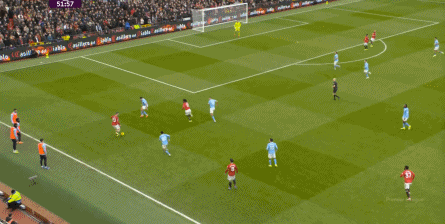 这些地方并没有队友给布鲁诺制造出空间,大部分都源于曼城在逼抢时出现的脱节,当然也和曼城的逼抢效率不足有关,毕竟这是曼城在新年后的第六场比赛,只是曼联的第四场。