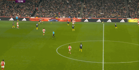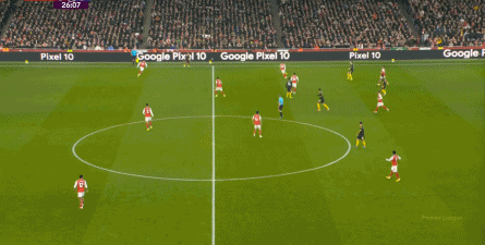 因为严格来说,阿森纳双中卫依然稍微偏缩,另外就是赖斯并不适合站位防守,他依然是一名在思路上到处跟着球跑的英式中场,所以真正的锚定职责只能交给苏比门迪,而这显然是小材大用了。