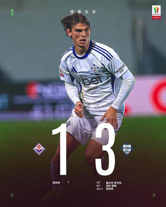 意大利杯1/8决赛展开争夺,科莫做客挑战佛罗伦萨。科莫本赛季联赛战绩很不错,前22场联赛取得11胜7平4负的成绩,排名第6,只比欧冠区排名第3的罗马少3分。这让科莫有希望冲击欧冠资格。近两场比赛科莫都赢了,而且都是大比分获胜完成零封,击败了拉齐奥和都灵。如今来到意大利杯赛场,科莫延续了出色的状态,击败了佛罗伦萨,杀入8强!