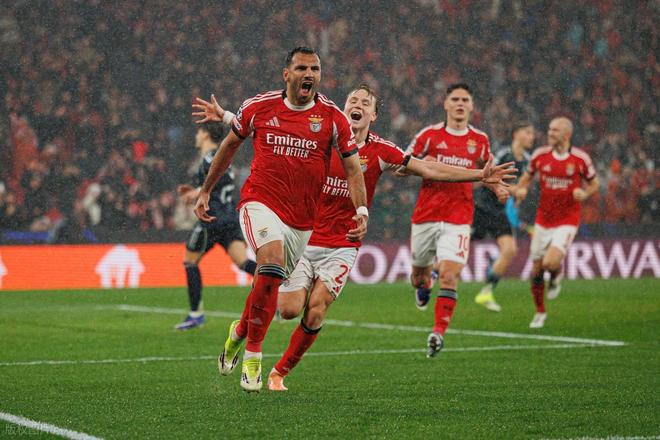 如梦方醒的皇马随后再加强进攻,第57分钟,皇马右路压上,居莱尔禁区内接球突破下底倒叁角回传,姆巴佩点球点处抢点迎球直接大力推射,皮球直入球门右下死角,姆巴佩梅开二度,皇马2:3扳回一球。第75分钟,皇马还是右路压上,居莱尔禁区角上突然起脚怒射,门将特鲁滨费力将球扑出。补时阶段,还在努力想绝平的皇马连遭重创,先是阿森西奥犯规吃到第2张黄牌被罚下,随后罗德里戈竟然连吃2张黄牌也被罚下。补时最后时刻,本菲卡禁区右侧前沿任意球机会,阿瑟斯操刀主罚兜传门前,门将特鲁滨小禁区前沿抢点强力头槌攻门得手,本菲卡上下半时各来个压哨进球,4:2击败皇马。