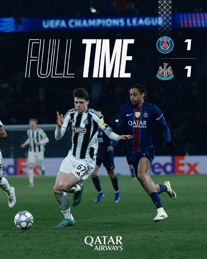 第78分钟,登贝莱持球突破未果回敲,维蒂尼亚禁区前沿直接起脚远射同样稍稍高出;第87分钟,戈登左路内切低射被挡,后门柱的巴恩斯无人盯防下近距离捅射却击中了立柱!最终2队在下半场均无建树,1:1握手言和,由于巴萨,切尔西,国米全部获胜并且积分都超过了14分,大巴黎和纽卡斯尔将双双去踢附加赛。