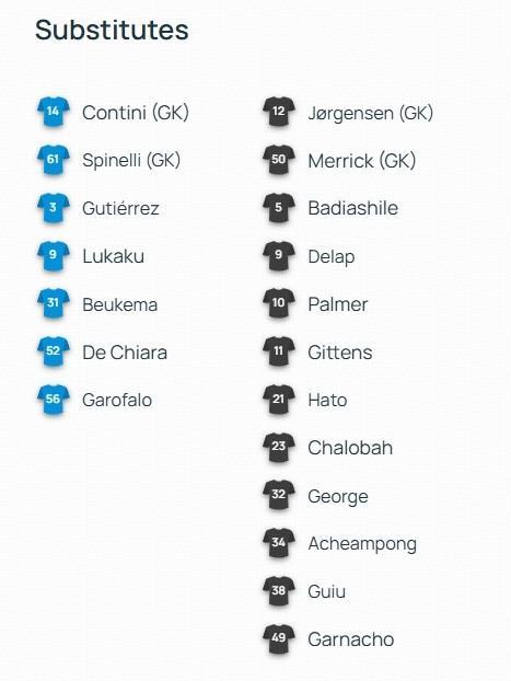 北京时间1月29日04:00,欧冠联赛阶段的一场对决。那不勒斯坐镇主场,迎战切尔西。赛前,双方的阵容公布如下: