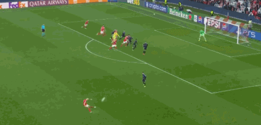 伤停补时只有5分钟时间,比赛已经踢到第97分钟。压哨时刻,本菲卡获得任意球,门将特鲁宾杀入禁区,接到队友奥尔斯内斯的传中,头球攻门得手,本菲卡4-2杀死悬念。