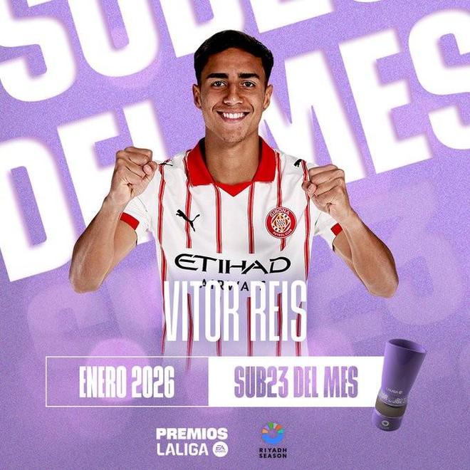 官方消息,赫罗纳后卫维托尔-雷斯当选西甲官方1月最佳鲍23球员。